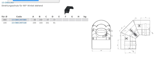 Strahlungsschutz Ofenrohr für Bogen 90°, stehend Ø 80 mm