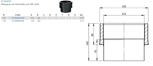 Übergang Kaminofen auf ISO-LINE doppelwandiges Ofenrohr Ø 130 mm