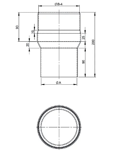 Steckverbinder, Ø 200mm, Stahl, unlackiert
