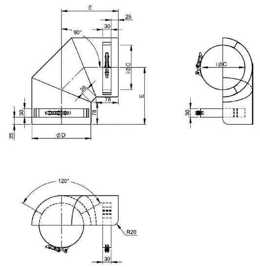 Strahlungsschutz Ofenrohr, Bogen 90°, Ø 160 mm, liegend