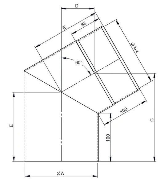 Bogen 60°, Ø 130mm, ohne Tür