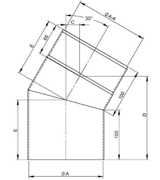 Bogen 30°, Ø 130mm, ohne Tür
