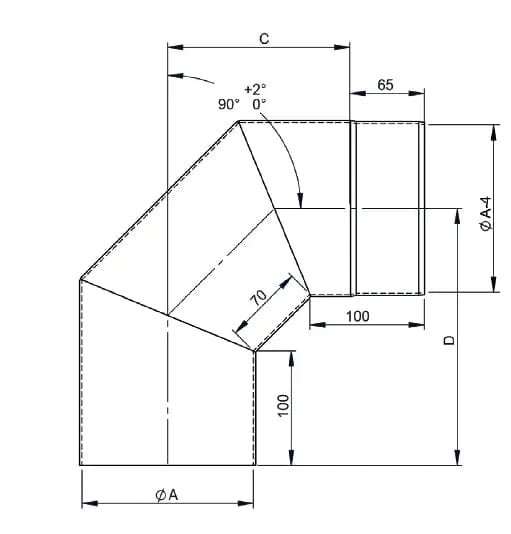 Bogen 90°, Ø 130mm ohne Tür