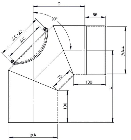 Bogen 90°, Ø 200mm mit Tür