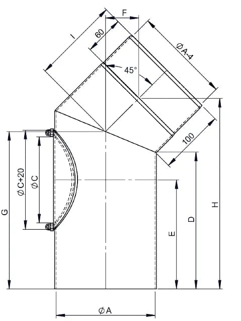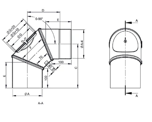 Bogen 45°, Ø 120mm mit Tür