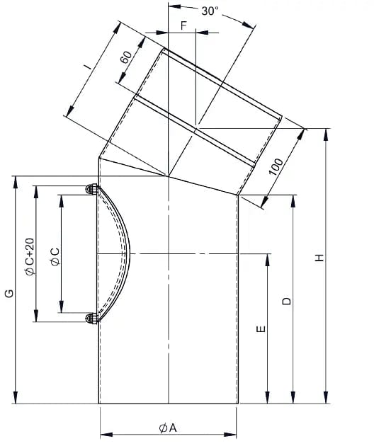 Bogen 30°, Ø 160mm mit Tür
