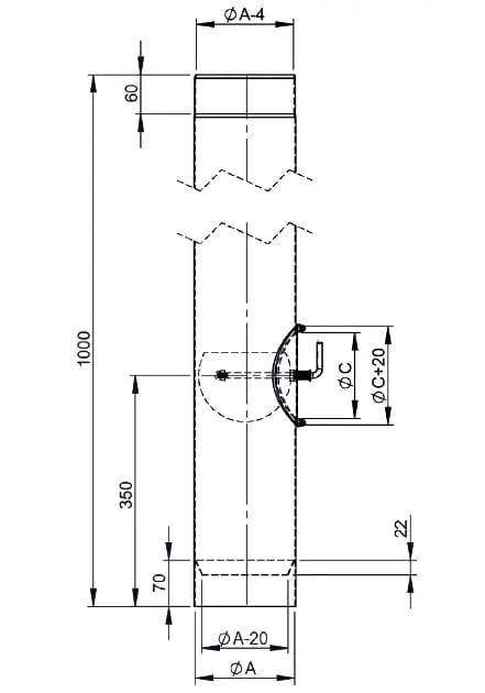 Ofenrohr 150 mm, l: 30 cm mit Drosselklappe und Tür