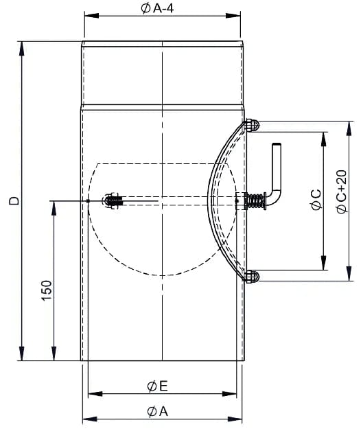 Winkelrohr mit Tür 160mm und Drosselklappe
