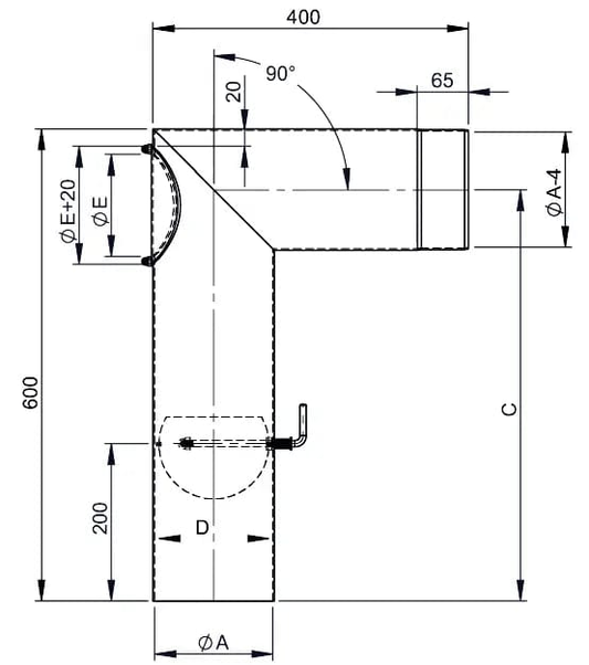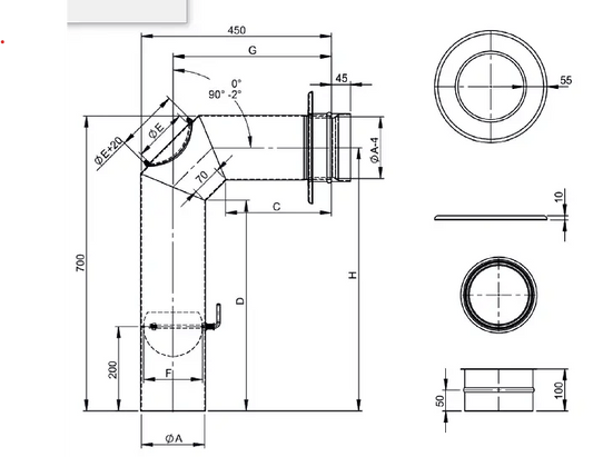 Ofenrohrset 200 mm, Kniewinkelrohr mit Tür und Drosselklappe