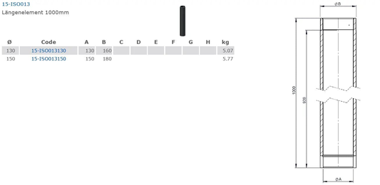 doppelwandiges Ofenrohr l: 1000 mm, Ø 130 mm