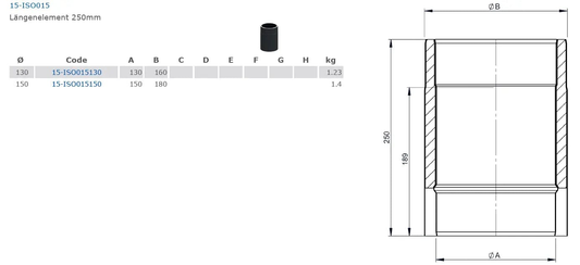 doppelwandiges Ofenrohr l: 250 mm, Ø 130 mm