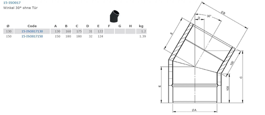 doppelwandiges Ofenrohr, Bogen 30°, Ø 130 mm ohne Tür