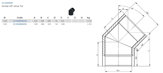 doppelwandiges Ofenrohr, Bogen 45°, Ø 150 mm ohne Tür