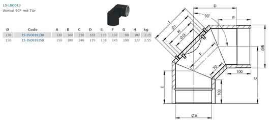 doppelwandiges Ofenrohr, Bogen 90°, Ø 130 mm mit Tür