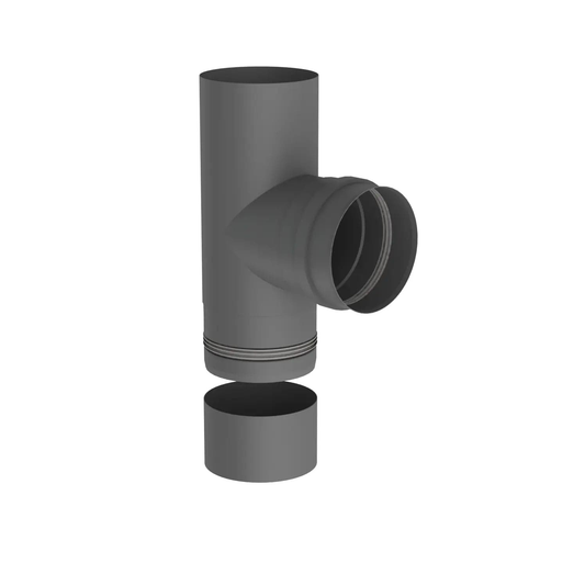 T-Anschluss 90° mit abnehmbarer Kondensatschale, Ø 100mm, Abgang mit Muffe (Geräteanschluss)
