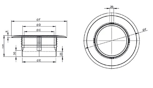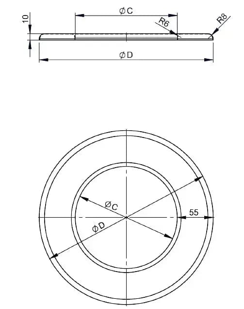 Wandfutter mit Zentrierfedern und Wandrosette 55mm, Ø 120mm