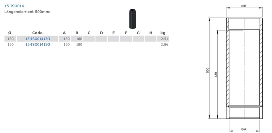 doppelwandiges Ofenrohr l: 500 mm, Ø 130 mm