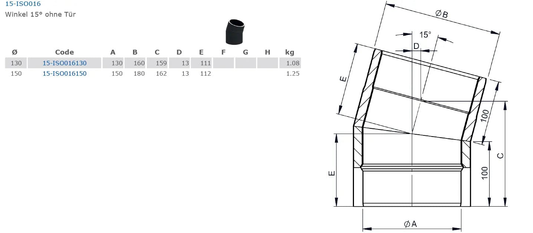 doppelwandiges Ofenrohr, Bogen 15°, Ø 150 mm ohne Tür