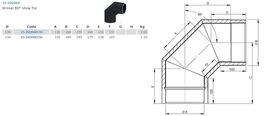 doppelwandiges Ofenrohr, Bogen 90°, Ø 150 mm ohne Tür