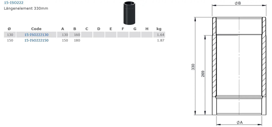 doppelwandiges Ofenrohr l: 330 mm, Ø 150 mm