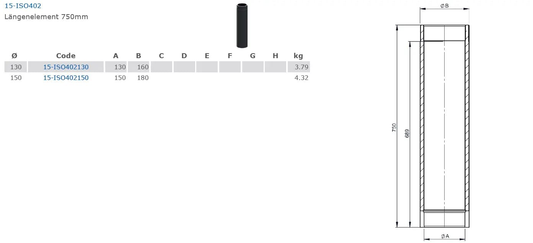 doppelwandiges Ofenrohr l: 750 mm, Ø 150 mm