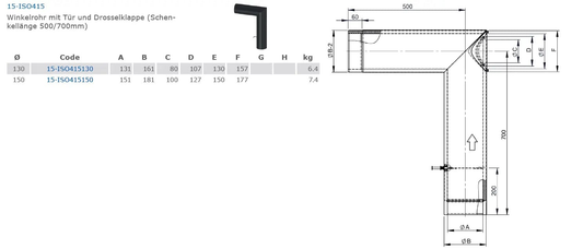 doppelwandiges Ofenrohr, Bogen-Set, Ø 130 mm mit Tür und Drosselklappe