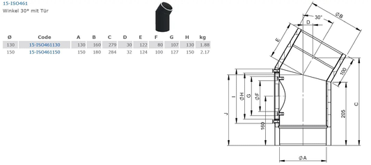doppelwandiges Ofenrohr, Bogen 30°, Ø 150 mm mit Tür