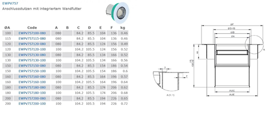 Anschlussstutzen mit integriertem Wandfutter, Ø 200/100