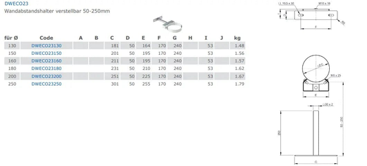 Wandhalter verstellbar 50-250 mm | Jeremias DW-ECO 2.0
