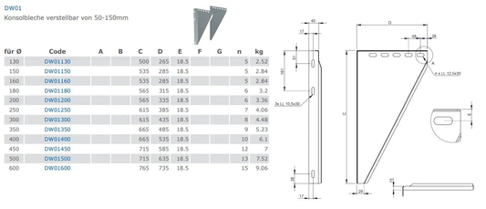 Konsolbleche verstellbar von 50 bis 150mm | DW Systeme