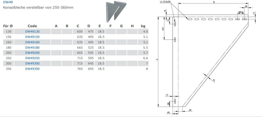 Wandkonsole verstellbar von 250 bis 360mm | alle DW-Systeme