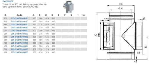 Feuerstätten-Anschluss 90° mit Reinigung gegenüberliegend