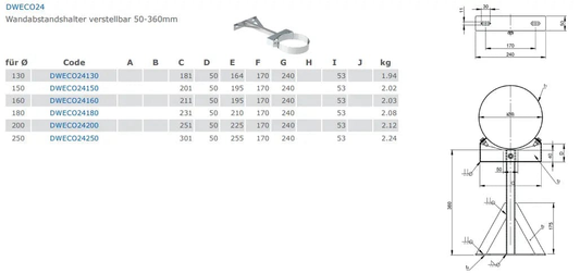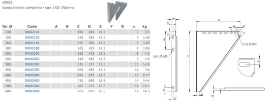 Wandkonsole verstellbar von 150 bis 250mm | alle DW-Systeme