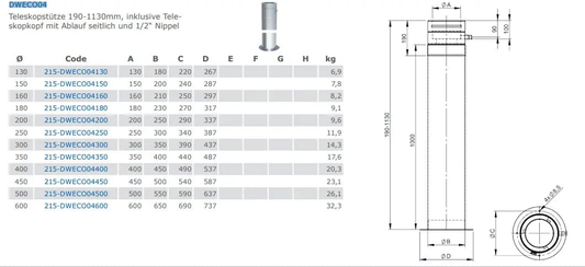 Stüssfuss, Teleskopstütze 190-1130mm incl. Kondensatablauf