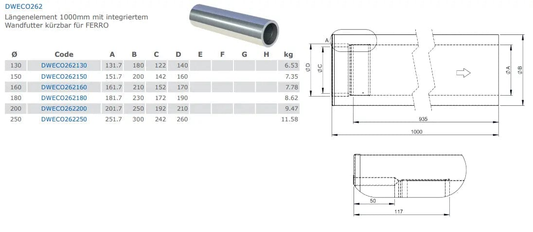Wanddurchführung 1000mm mit integriertem Wandfutter kürzbar für 2mm Produkte (FERRO)