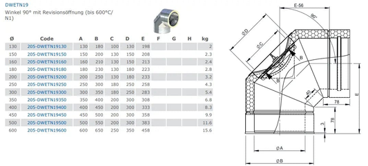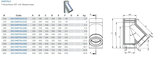 Feuerstätten Anschluss,T-Anschluss 45° mit Wassernase