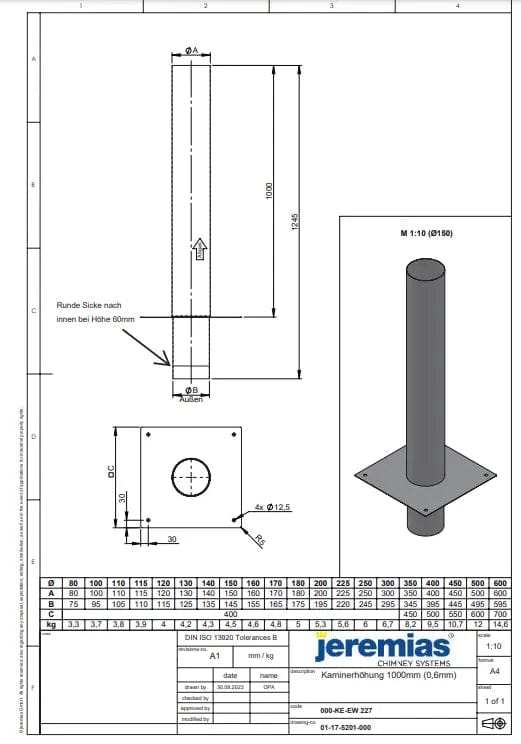 Schornsteinverlängerung aus Edelstahl einwandig, l: 1000 mm