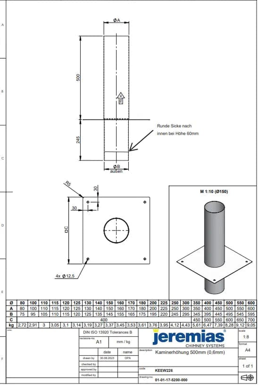 Schornsteinverlängerung aus Edelstahl einwandig, l: 500 mm